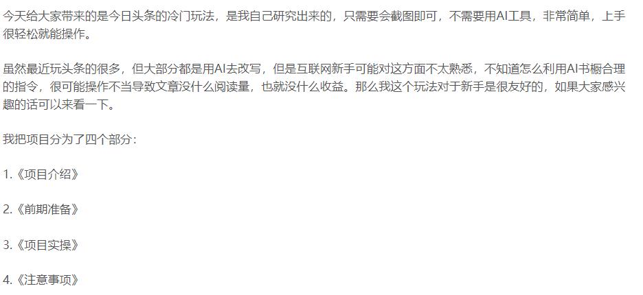 漫资源 数字化系列 新媒体运营 资源分享 2024-03-16 无需用AI工具今日头条冷门玩法 今日头条冷门玩法,无需用AI工具,会截图即可,门槛低好操作好上手! 生成海报 下载海报 相关资源微创业全能训练营认证班名师讲座宠物私域赛道新玩法数字人+思维认知口播号制作最新引流方法流量红利退去百万博主破局翻盘小红书运营攻略装修行业抖音营销课同城引流全攻略 下载 大礼包 文案大全 素材 致富技术 视频 讲座 课程 运营 本资源下载说明:本站也是始于兴趣,源于网络,仅用于学习及研究使用,切勿用于商业用途,如侵权联系删除! 其版权归该资源的合法拥有者所有。漫资源 » 无需用AI工具今日头条冷门玩法