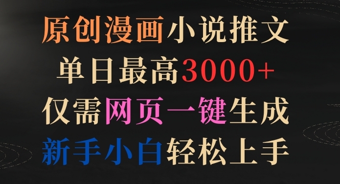 原创漫画小说推文,仅需网页一键生成,新手轻松上手...小说推文项目,就是通过在抖音、小红书等平台上发布小说类视频作品,引导用户到小说平台观看小说。该项目门槛较低,很适合新手,无需高超的技术水平,发布符合规范的推广视频即可逐渐产生收益。目前,小说推文项目路径主要有两种方式:一个是引导用户在平台充值消费,另一个是引导用户下载小说平台,搜索你推荐的小说,完成拉新。项目本质就是从公域平台引流至小说平台,以此赚取小说平台的佣金。