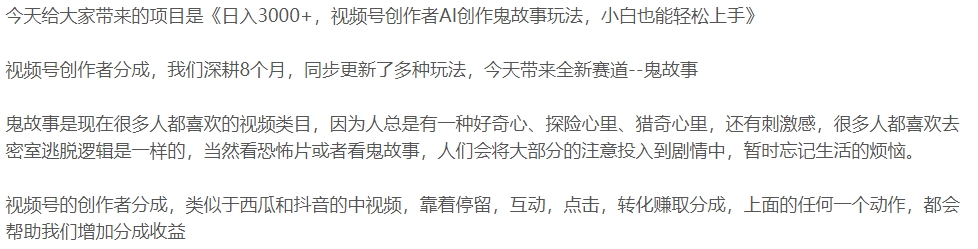 科技 数字化系列 新媒体运营 资源分享 2024-03-18 视频号创作者AI创作鬼故事玩法 视频号创作者AI创作鬼故事玩法,小白也能轻松上手! 生成海报 下载海报 相关资源微创业全能训练营认证班名师讲座宠物私域赛道新玩法数字人+思维认知口播号制作最新引流方法流量红利退去百万博主破局翻盘小红书运营攻略装修行业抖音营销课同城引流全攻略 下载 大礼包 文案大全 素材 致富技术 视频 讲座 课程 运营 本资源下载说明:本站也是始于兴趣,源于网络,仅用于学习及研究使用,切勿用于商业用途,如侵权联系删除! 其版权归该资源的合法拥有者所有。漫资源 » 视频号创作者AI创作鬼故事玩法
