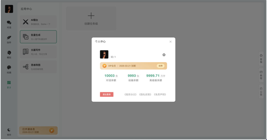 AI内容创作:内置创作模型和自定义模型。可以无限添加各种模型,各种身份自由发挥,市面上的各种模型均可以支持!