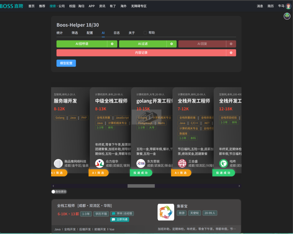 漫资源 » Boss直聘助手-优化UI去除广告 批量投递简历 GPT自动打招呼