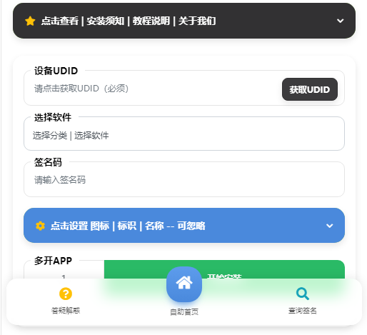 这是一款iOS签名站的开源源码,免去了授权,它支持UDID获取、软件选择以及签名码功能。 同时,用户可以多开APP进行安装。这是一个自主可下载的版本,感兴趣的用户可以自行获取。 冰蒂购站长搭建了下。发现可正常搭建。各页面可正常打开。具体的可看下方演示图片 仅供学习研究之用,商用请支持正版...