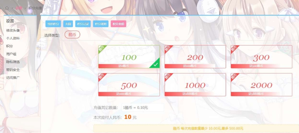 积分充值系统:用户可通过支付平台直接购买积分,轻松实现会员等级的提升或享受更多特权服务,增强用户粘性。