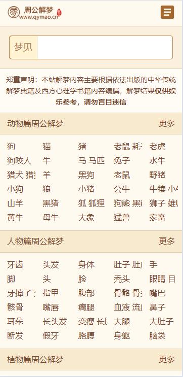 科技 建站-程序 数字化系列 2025-01-12 仿《周公解梦》源码 梦境解释查询大全网站模板 基于帝国cms7.5utf8版本周公解梦源码,自带一万多条数据,电脑pc手机h5手机自适应代码。已生成静态html.拿过部署就可以使用。模板结构清晰,无加密... 生成海报 下载海报 相关资源抖猫高清去水印微信小程序全套源码 含流量主免签封装支持安卓和苹果及EXE程序APP分发系统源码抖音主页解析3.0 强势来袭抖音视频播放器源码多端商城系统源码H5小程序APP支持DIY模板直播分销 PHP 下载 源码 软件 本资源下载说明:本站也是始于兴趣,源于网络,仅用于学习及研究使用,切勿用于商业用途,如侵权联系删除! 其版权归该资源的合法拥有者所有。漫资源 » 仿《周公解梦》源码 梦境解释查询大全网站模板