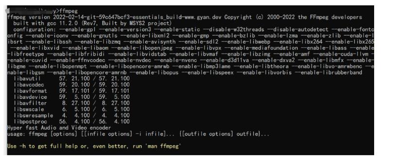 打开控制台输入ffmpeg,如果显示正常,可以不用下载链接里面的ffmpeg,不然的话下载并放到对应位置(win10,其他系统自行搜索)