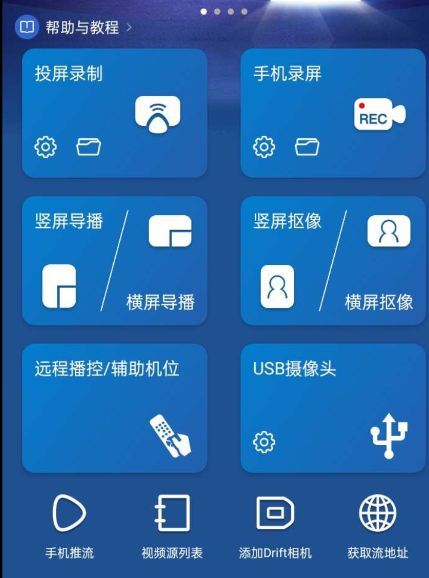 V导播录屏App是一款强大的视频直播应用软件,能够让用户在App里面轻松的添加各种直播应用,比如比赛计分板,还有各种活动的标题等,字幕添加。拥有视频采集,画面处理,直播推流3大功能,V导播录屏APP用户可以通过手机摄像头,或者购买禾苗编码棒,禾苗编码盒等设备来连接各种HDMI视频源(如摄像机,运动相机,无人机,机顶盒等)。此外V导播录屏APP 用户还可自行填入推流地址后(比如熊猫,斗鱼等知名直播空间),即可进行直播。