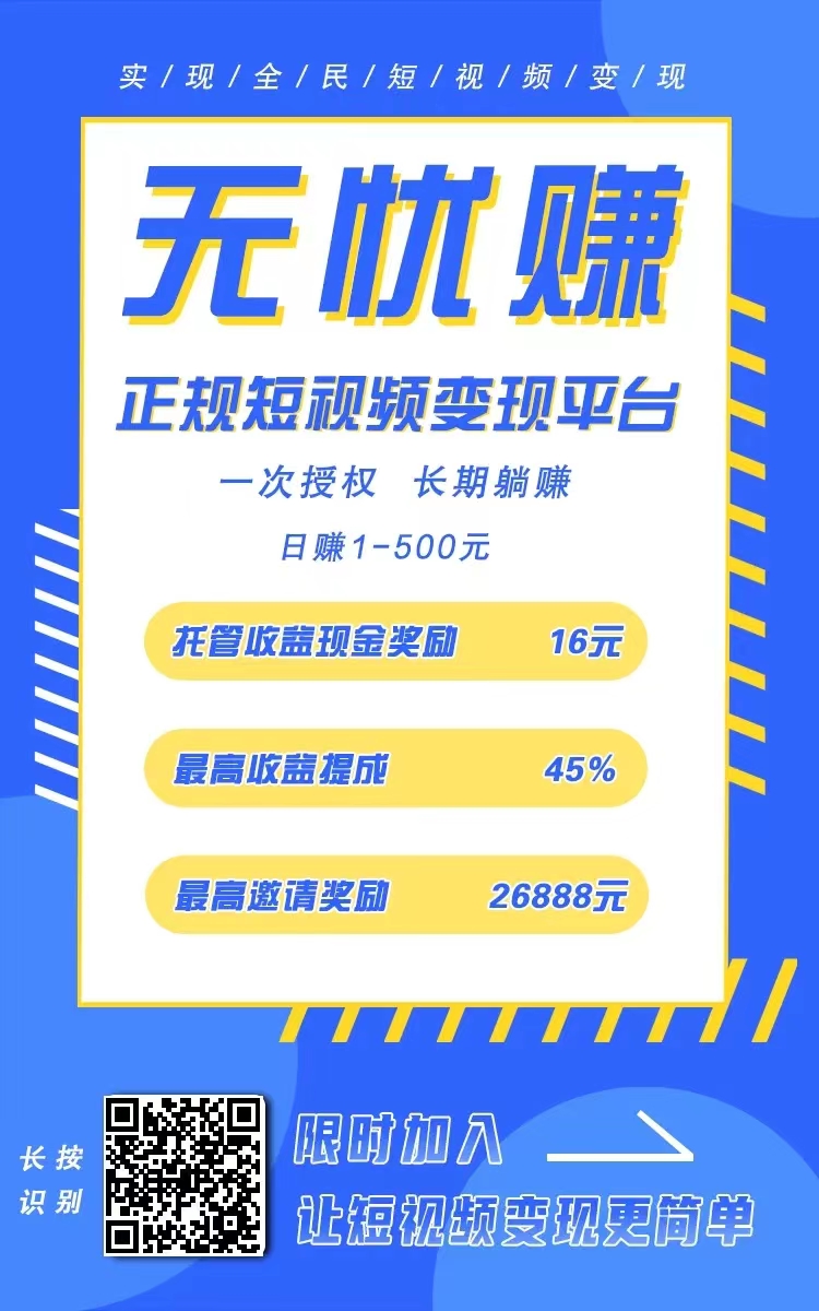 你出账号,平台帮您运营,当天授权短视频帐号,隔天就可以看到收益,躺着挣米无需做任何任务;不会玩段视频无关系,只需把d音等各账号托管给来钱助手,之后无需您任何操作,每天平台自动发布视频,不点赞.不关注,快速帮您视频变现.长期躺赚(短视频.图文代运营),不伤害账号还能涨粉,能养号何乐而不为