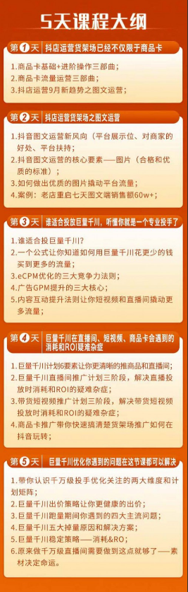 漫资源 抖音课程 数字化系列 新媒体运营 2023-11-25 [抖音电商]巨量千川投放5天课程 [抖音电商]巨量千川投放5天课程:抖音商品卡+爆款图文+千川投流线上课 生成海报 下载海报 相关资源[怀旧新娘]无人直播整蛊互动玩法(含全套开播教程+软件+视频素材+音效)本地生活线下运营策略逻辑流量训练营之内容运营专项课蟠桃会直播秘籍揭秘-赠保姆级教程名字写藏头诗半无人直播(教程+软件+话术)撸音浪暴利 下载 办公教程 大礼包 抖音 文案大全 素材 致富技术 营销 视频 讲座 设计 课程 运营 问题解答 本资源下载说明:本站也是始于兴趣,源于网络,仅用于学习及研究使用,切勿用于商业用途,如侵权联系删除! 其版权归该资源的合法拥有者所有。漫资源 » [抖音电商]巨量千川投放5天课程