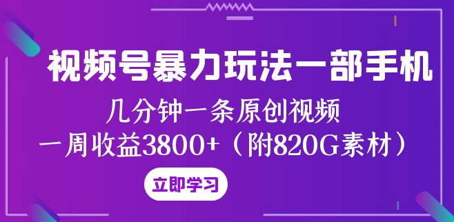 手机+原创视频号暴力玩法课程(附820G素材)