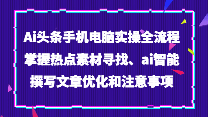 科技 数字化系列 新媒体运营 资源分享 2023-12-01 掌握热点Ai头条手机电脑实操全流程 Ai头条文章。主要内容包括:今日头条素材寻找、如何ai智能撰写文章、掌握社会热点类文章、优化调整和注意事项。手机电脑实操步骤全流程。 课程目录: 01.第一课、头条注册,权益开通.mp4 02.第二课、寻找素材,提供方向.mp4 03.第三课、实操引导,如何撰文.mp4 04.第四课、发布文章,坐等收益.mp4 05.第五课、注意事项,优化调整.mp4 06.电脑端操作步骤全流程.mp4 07.如何寻找对标账号.mp4 12.关于头条垂直度问题以及一些工具使用的细则.mp4 13.如何使用bing写社会热点文章.mp4 14.10月14日直播讲解社会热点类文章如何实操.mp4 下载地址 生成海报 下载海报 相关资源爆款短视频前三秒如何设计50招运营爆款课蟠桃会直播秘籍揭秘-赠保姆级教程卖编绳抖音无人直播落地保姆级教程抖音最新最火旗袍女团跳舞无人直播玩法名字写藏头诗半无人直播(教程+软件+话术)撸音浪暴利 下载 大礼包 微信 抖音 文案大全 致富技术 营销 视频 讲座 课程 运营 本资源下载说明:本站也是始于兴趣,源于网络,仅用于学习及研究使用,切勿用于商业用途,如侵权联系删除! 其版权归该资源的合法拥有者所有。漫资源 » 掌握热点Ai头条手机电脑实操全流程