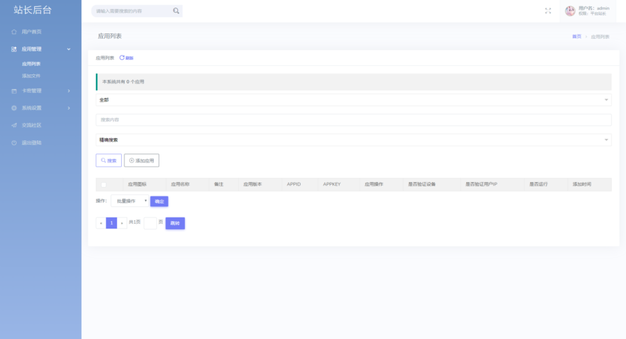 应用备注、应用版本、多级代理价格、免费付费切换、验证用户IP、验证用户设备、应用开关等