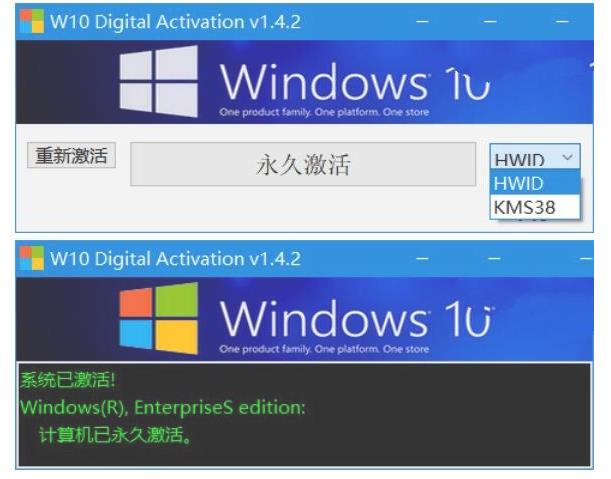 W10 Digital Activation是由俄罗斯人Ratiborus制作的一款Windows 10永久激活工具,Win10数字许可激活工具,主要采用HWID(Windows 10数字许可永久激活)和KMS38模式(激活有效期至2038年)方式激活,相比其它激活工具安全不报毒,无需联网操作简单,单执行文件绿色无残留,激活成功率非常不错!