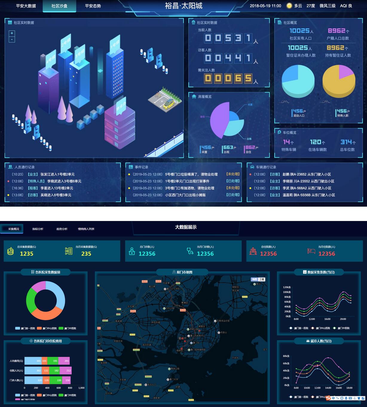 该合集是基于HTML/CSS/JS开发的图表分析网页模版,用于实现大数据可视化大屏电子沙盘。项目包含以下行业模块: