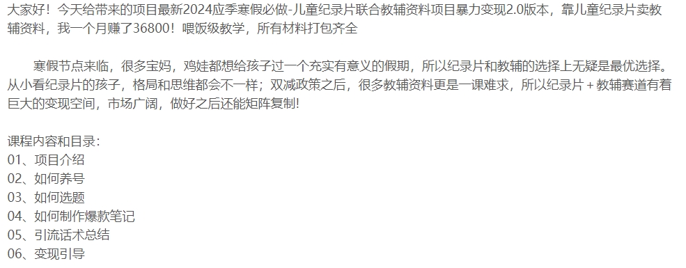 漫资源 亲子课程 抖音课程 数字化系列 2024-01-29 儿童纪录片買教辅资料喂饭级教学 靠儿童纪录片買教辅资料,喂饭级教学... 生成海报 下载海报 相关资源开启宝宝图片新篇章AI 萌娃制造机保姆级教程抖音财神祝福贴壁纸号新玩法只需一个软件就能在家轻松搞定录课直播(obs软件教学)46节课程软件一键生成原创美女视频全平台通用引爆流量热舞美女直播24小时矩阵全天挂机被动收入热门项目 下载 亲子课程 大礼包 微信 抖音 文案大全 素材 致富技术 视频 讲座 课程 软件 运营 问题解答 本资源下载说明:本站也是始于兴趣,源于网络,仅用于学习及研究使用,切勿用于商业用途,如侵权联系删除! 其版权归该资源的合法拥有者所有。漫资源 » 儿童纪录片買教辅资料喂饭级教学