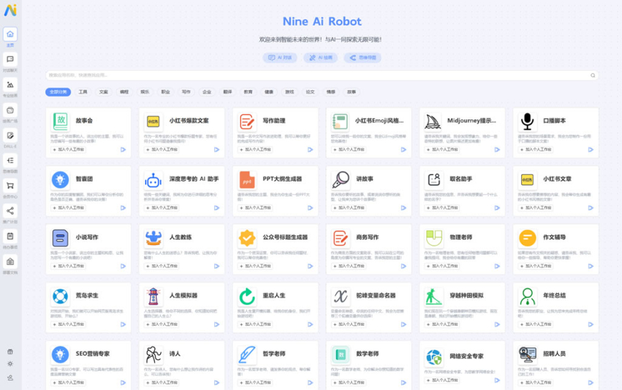 Nine AI推出全新AI系统网站源码:超越ChatGPT的交互体验,Nine AI.ChatGPT是基于ChatGPT开发的一个人工智能技术驱动的自然语言处理工具。它不仅能像人类一样进行对话,还能撰写各种文案、翻译、代码和论文。