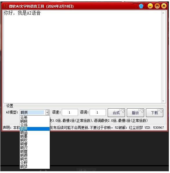 微软AI文字转语音工具2024年2月20日2版