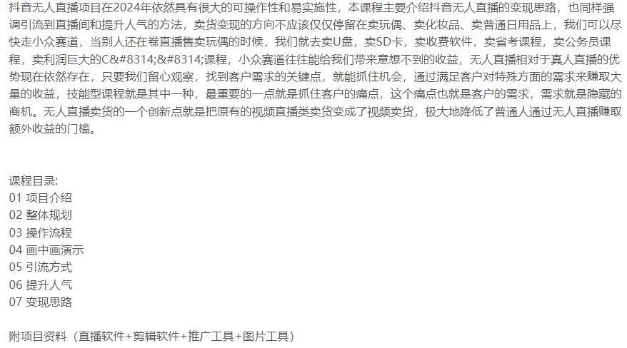 漫资源 抖音课程 数字化系列 新媒体运营 2024-02-26 抖音多种无人直播项目画中画新技巧理论+实操 抖音无人直播项目,画中画新技巧,多种无人直播形式,案例丰富,理论+实操 生成海报 下载海报 相关资源抖音财神祝福贴壁纸号新玩法只需一个软件就能在家轻松搞定录课直播(obs软件教学)46节课程软件一键生成原创美女视频全平台通用引爆流量热舞美女直播24小时矩阵全天挂机被动收入热门项目全自动输出爆文粘贴复制矩阵操作AI掘金项目 下载 大礼包 微信 抖音 文案大全 素材 致富技术 视频 讲座 课程 软件 运营 问题解答 本资源下载说明:本站也是始于兴趣,源于网络,仅用于学习及研究使用,切勿用于商业用途,如侵权联系删除! 其版权归该资源的合法拥有者所有。漫资源 » 抖音多种无人直播项目画中画新技巧理论+实操