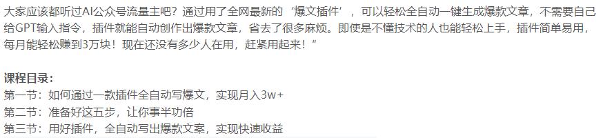 科技 抖音课程 数字化系列 新媒体运营 2024-02-26 全自动输出爆文粘贴复制矩阵操作AI掘金项目 AI掘金2.0,通过一个插件全自动输出爆文,粘贴复制矩阵操作 生成海报 下载海报 相关资源一条视频变现5种收益制作AI打爆流量最新AI一键生成财神爷项目-刷爆新年祝福流量抖音财神祝福贴壁纸号新玩法只需一个软件就能在家轻松搞定录课直播(obs软件教学)46节课程软件一键生成原创美女视频全平台通用引爆流量 ChatGPT 下载 大礼包 微信 抖音 文案大全 素材 致富技术 视频 讲座 课程 软件 运营 问题解答 本资源下载说明:本站也是始于兴趣,源于网络,仅用于学习及研究使用,切勿用于商业用途,如侵权联系删除! 其版权归该资源的合法拥有者所有。漫资源 » 全自动输出爆文粘贴复制矩阵操作AI掘金项目