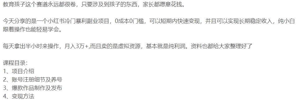 漫资源 名师讲座 小学课程 数字化系列 2024-02-29 小红书2024冷门教育赛道教程 小红书2024冷门教育赛道 纯小白喂饭级 生成海报 下载海报 相关资源微创业全能训练营认证班名师讲座2024年风口人工智能学习资料AIGC(AI绘图、Midjourney、Stable Diffusion 等资料)打造餐饮超级个体户:线上卖技术、门店招学员、选品技巧、选址方法、门店运营管理等付费模板免费领取10000+剪辑PPT模板玩赚数字人操作员直播搭建/多路开播/选品技巧/0-1开播流程 下载 大礼包 小学教程 文案大全 素材 视频 讲座 课程 运营 问题解答 本资源下载说明:本站也是始于兴趣,源于网络,仅用于学习及研究使用,切勿用于商业用途,如侵权联系删除! 其版权归该资源的合法拥有者所有。漫资源 » 小红书2024冷门教育赛道教程
